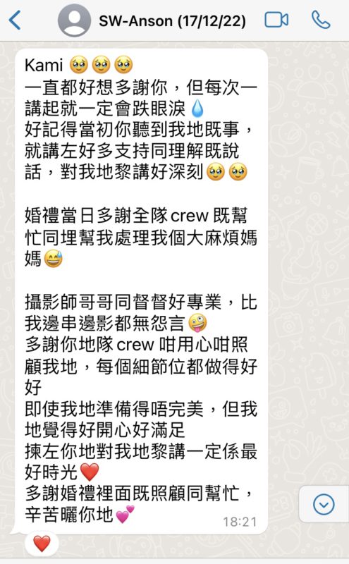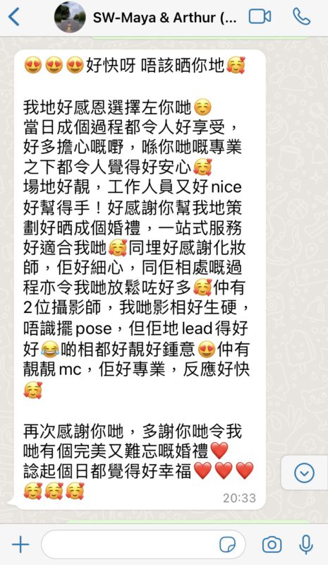 請即與我們輕婚禮統籌專員傾傾你嘅唸法