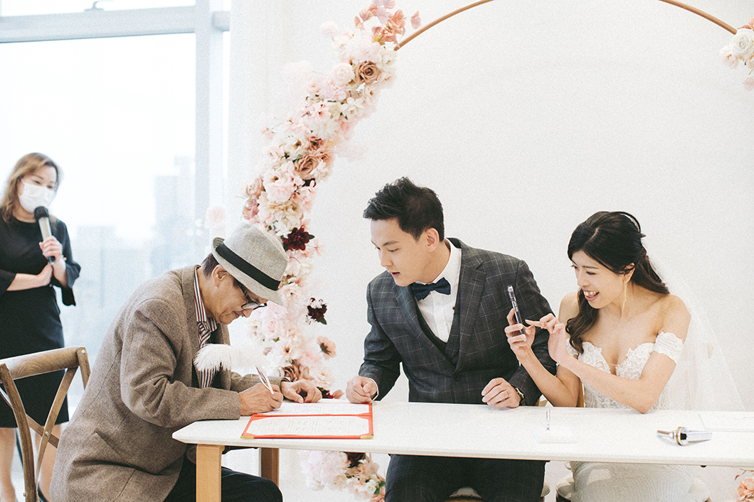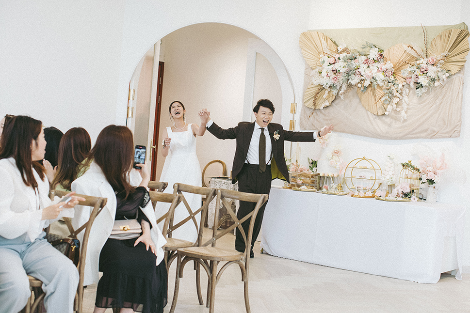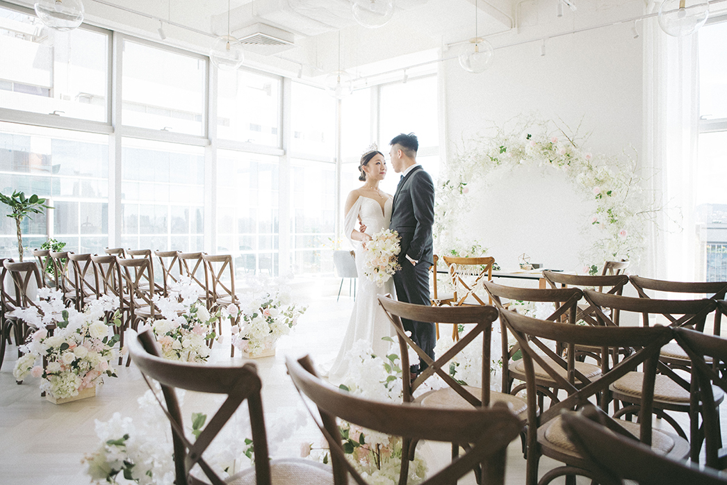 – 多款獨家設計花藝拱門及證婚枱面佈置